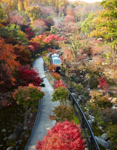 - 모노레일 탑승 방향은 오른쪽 창가가 단풍 뷰가 좋다는 후기도 있어요