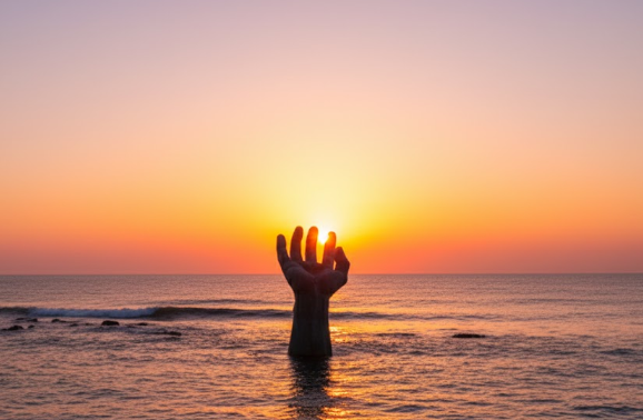 바다 위 손과 함께 떠오르는 해는 새해 소망을 빌기에 딱 좋다고 알려져있어요.